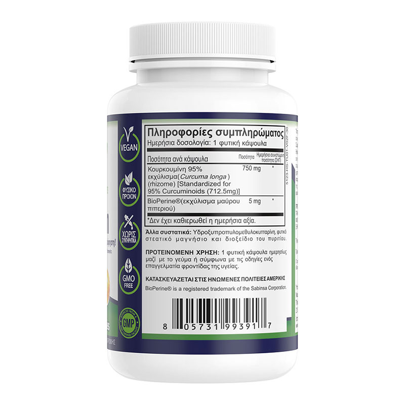 Vegan Natural Vitamins Curcumin 750mg με πιπέρι – Κουρκουμίνη