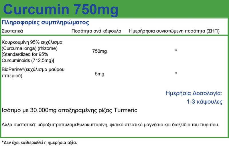 Το συμπλήρωμα κουρκουμίνης να παίρνεται με τα κυρίως γεύματα.