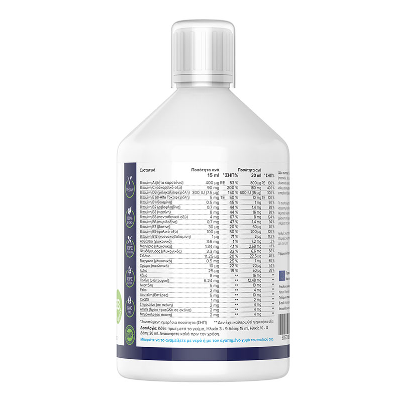 Vegan Natural Vitamins Kids Multivitamin 3+ 500ml- Παιδική πολυβιταμίνη